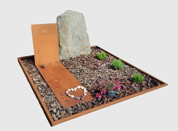 Cortenstaal grafmonument met leisteen – Een tijdloos ontwerp geeft ruimte aan herinnering — met aandacht voor detail en betekenis.