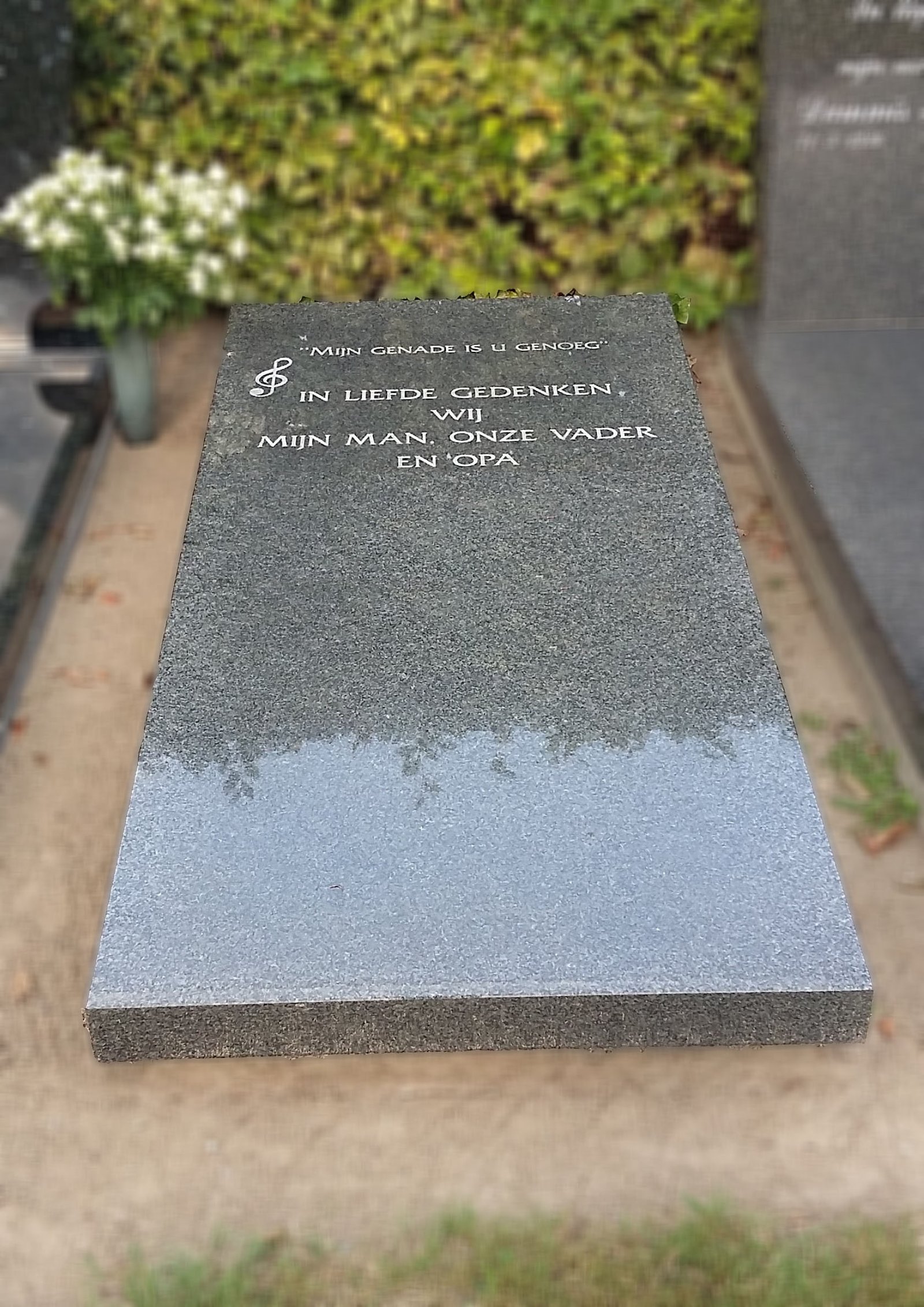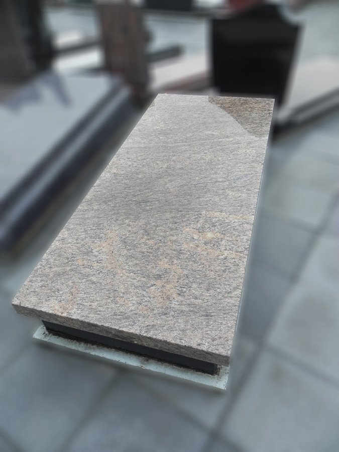 Deze grafsteen is uitgevoerd in graniet. Door te kiezen voor graniet kiest u voor een solide basis. De structuur en afwerking dragen bij aan een waardige uitstraling op de rustplaats.